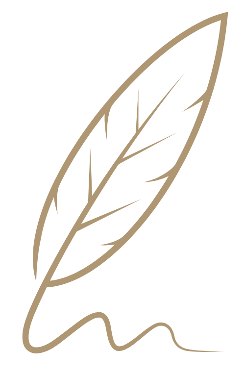 Dat zie je ook terug in het logo. De pennenveer staat voor mij symbool voor twee werelden, inspiratie en wijsheid, die samenkomen.